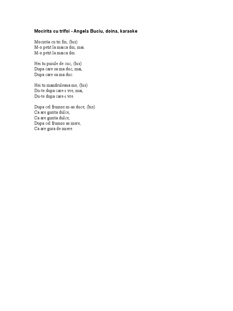 D Bm G A Mocirita Cu Trifoi D Bm E7 A Mocirita Cu