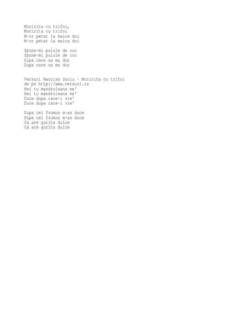 Versuri Mocirita Cu Trifoi Blog Informatii Diverse