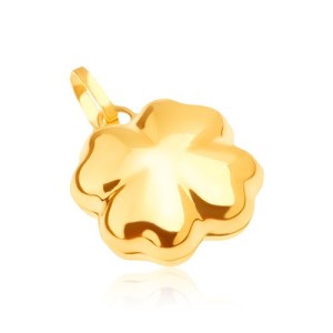 Pandantiv Lucios Din Aur Trifoi Cu Patru Foi Tridimensional
