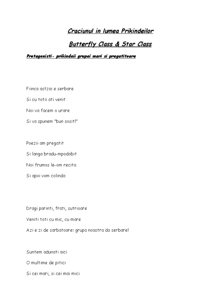 Un alt model de serbare cu ocazia sfintei sărbători a crăciunului. Exersati va memoria invatand si recitand impreuna poezii de craciun. Le am selectat pentru copiii talentati care s au remarcat in redarea expresiva a textelor lirice. Serbare crăciun tradiţii româneşti de crăciun vă prezentăm un program pentru serbarea de crăciun o minunată scenetă legată de obiceiurile şi tradiţiile româneşti de crăciun.