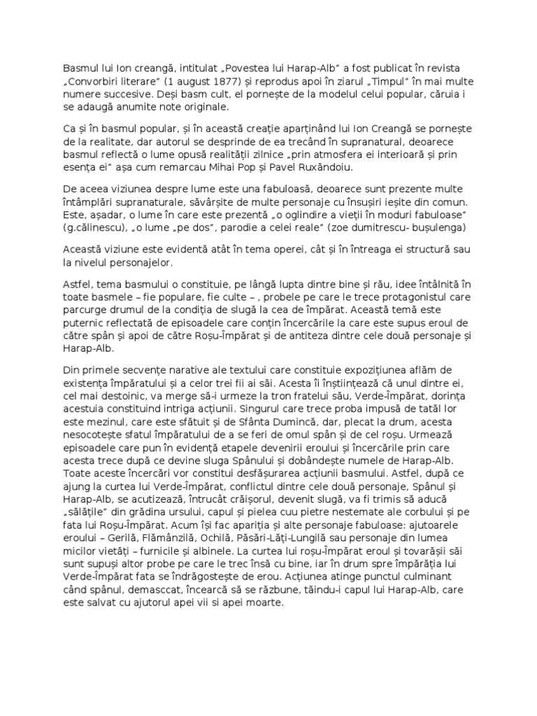 Povestea Lui Harap Alb De Ion Creangă Comentariu G B