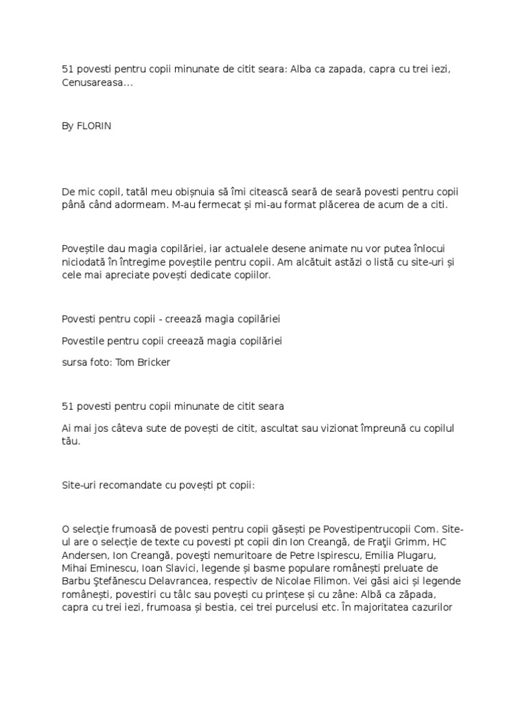 52 De Povesti Pentru Copii Pdf Documents Kids And Parenting Education Early Education