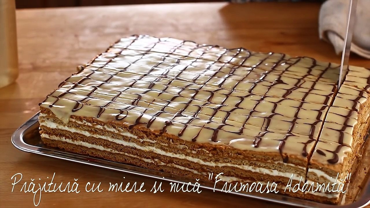 Prăjitura Frumoasa Adormită Cu Foi Cu Miere și Nucă Youtube