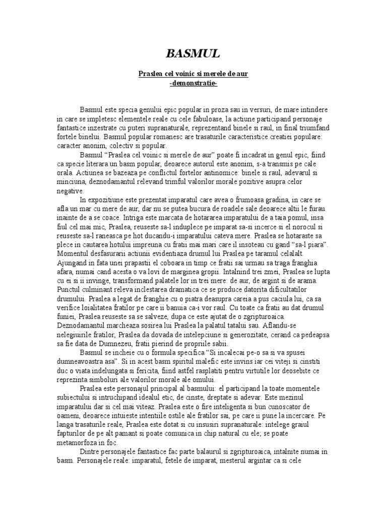Referat Basmul Praslea Cel Voinic Si Merele De Aur 337987 Graduo