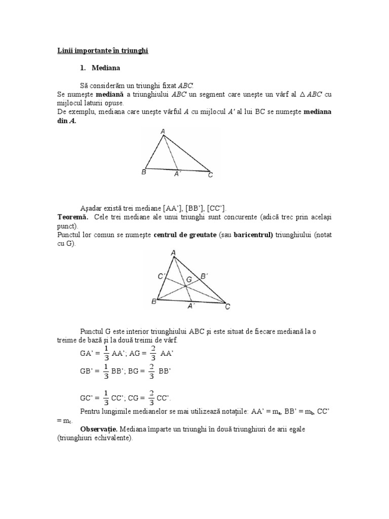 Triunghiunghiul Mediana Intr Un Triunghi Centrul De Greutate G