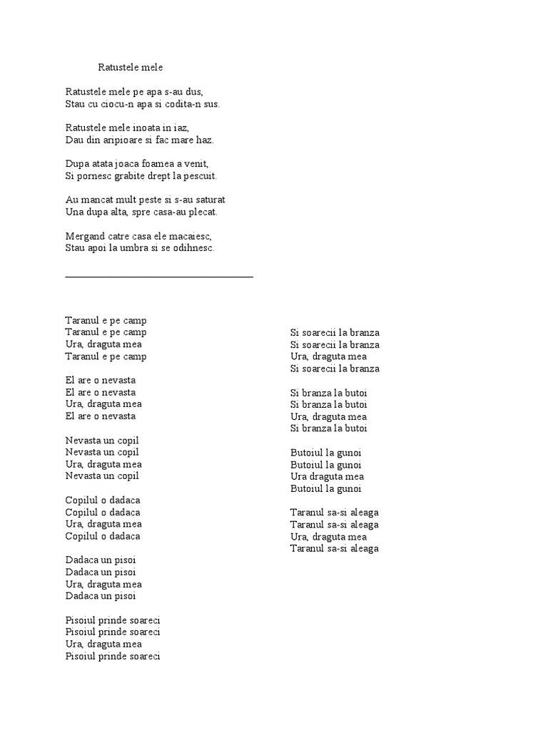 Raţustele Mele Pe Apă S Au Dus Romanian Children S Songs