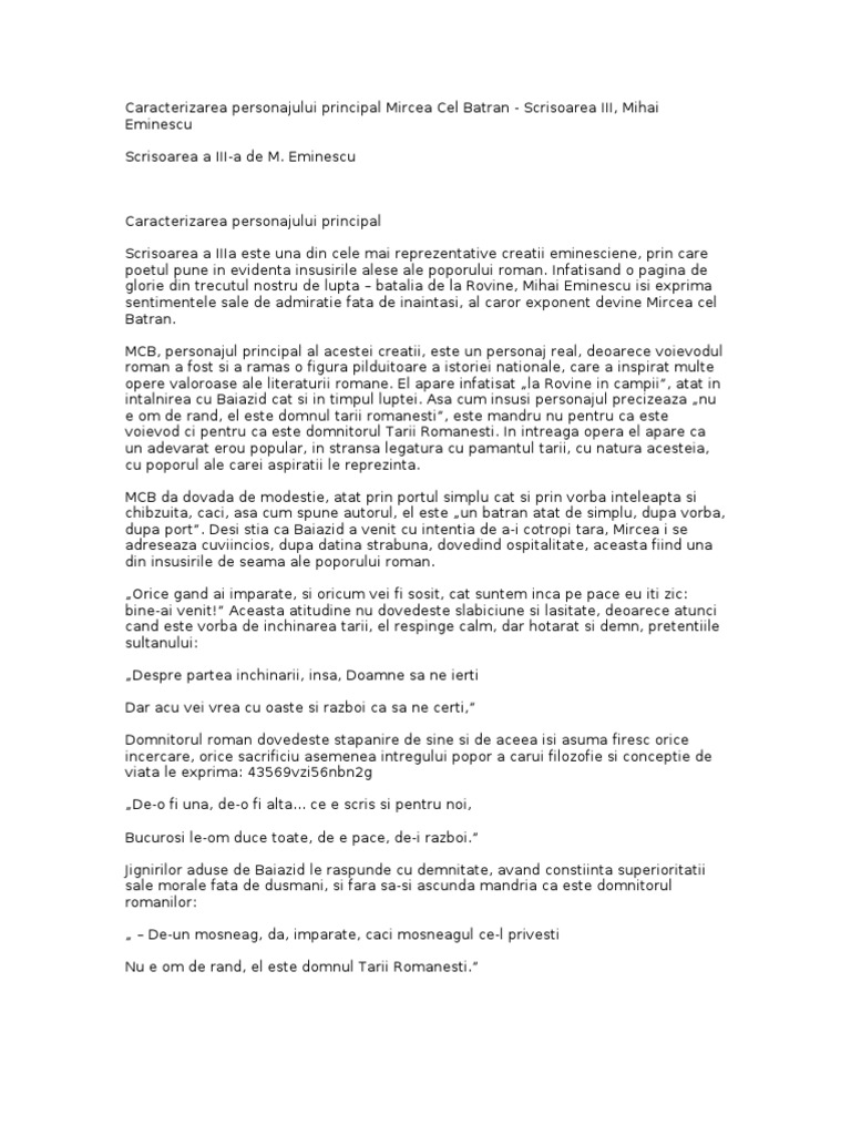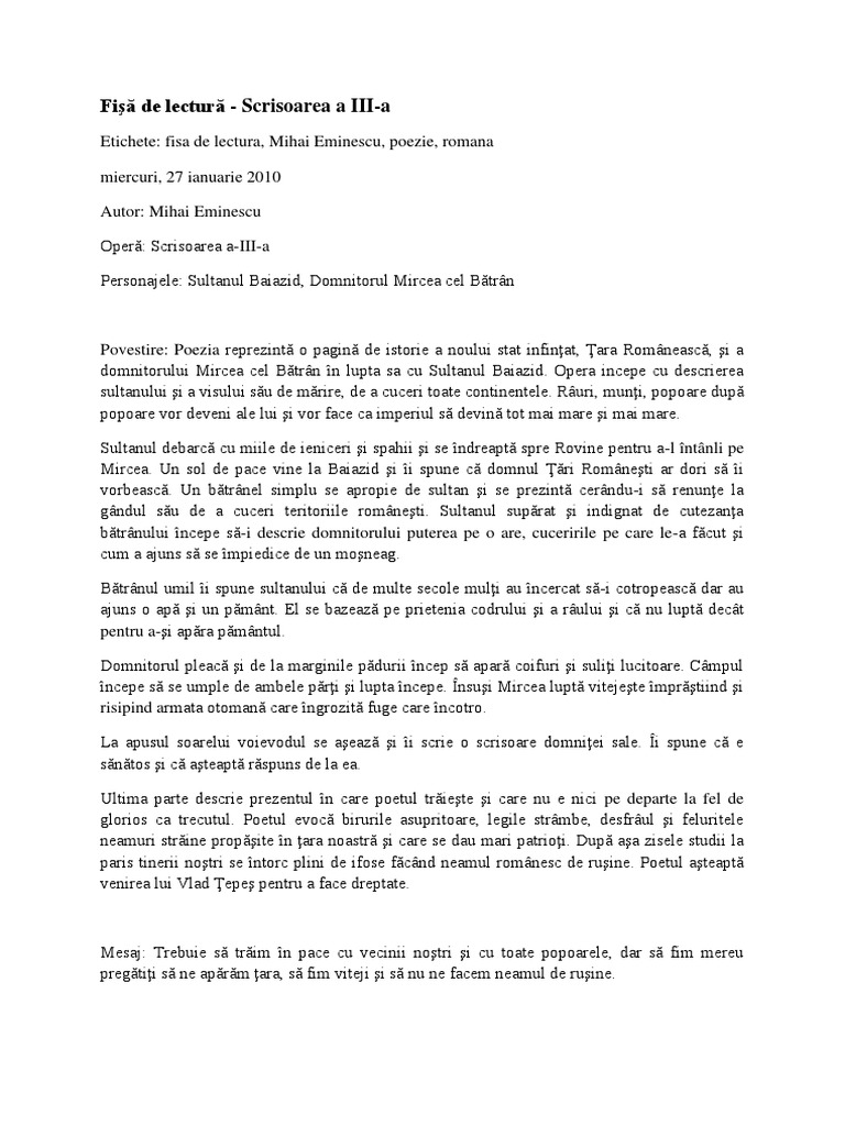 Urgent Rezumat Scrisoarea Iii De Mihai Eminescu Vă Rog
