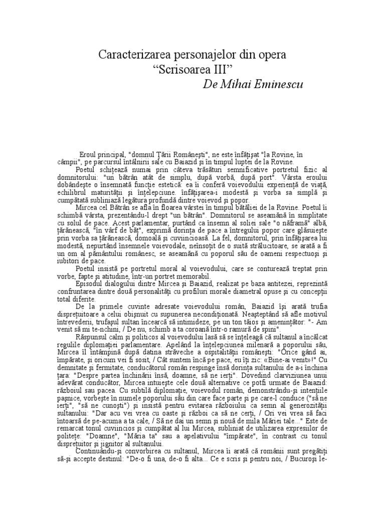 Caracterizarea Personajelor Din Opera Scrisoarea Iii