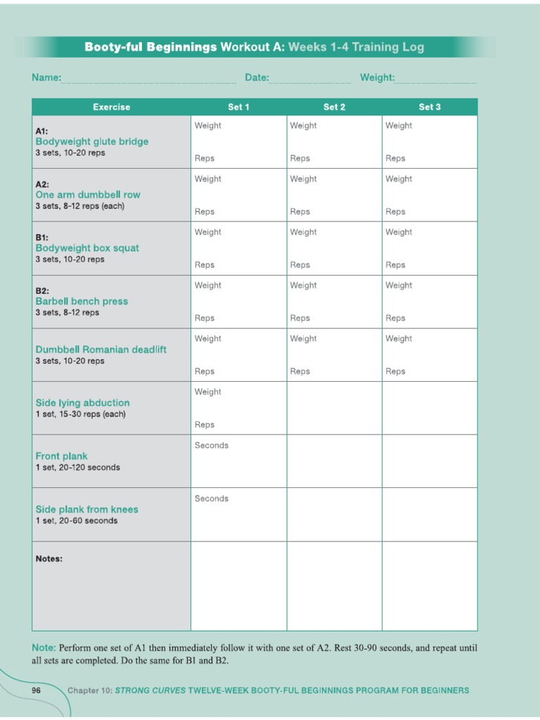 Booty Ful Beginnings Workout A Weeks 1 4 Training Log Pages 1