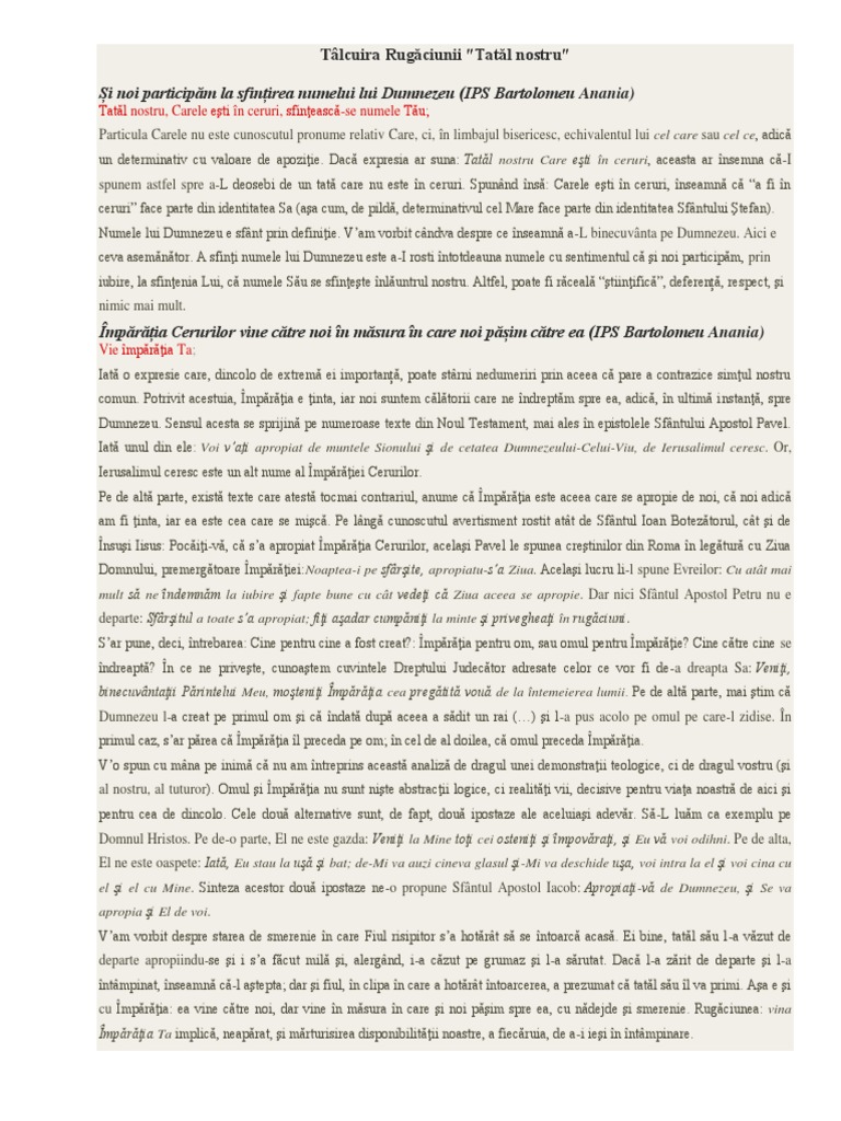 Talcuirea Rugaciunii Tatăl Nostru Docx