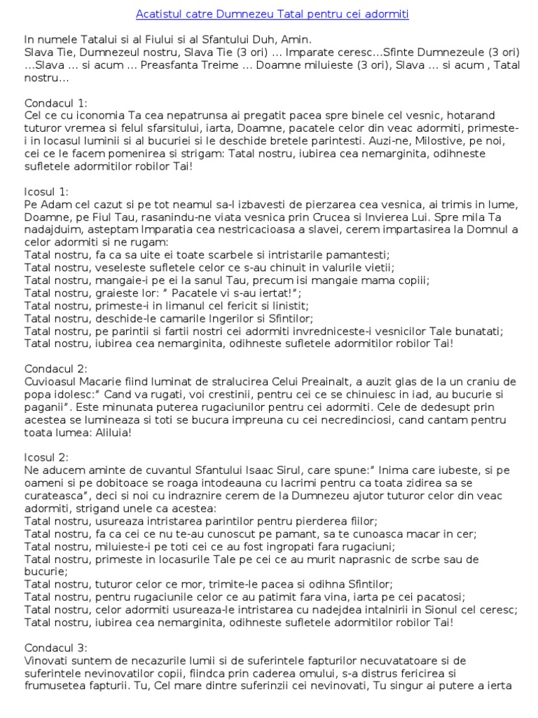 Acatistul Catre Dumnezeu Tatal Pentru Cei Adormiti